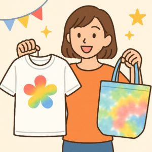 無地のTシャツやトートバッグを、自分好みに染めることで、世界に一つだけのアイテムが作れます。
