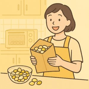 さらに茶封筒は加熱の際に熱がこもりすぎないため、焦げつきを防ぎ、銀杏本来の風味を損なわずに調理することができます。