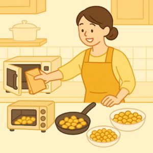 フライパンで乾煎りしたり、オーブンでじっくり焼く方法もあります。