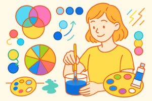 色相環を使えば、どの色とどの色を混ぜればどう変化するのかを予測しやすくなり、色の調和をとるための感覚が自然と身についてきます。